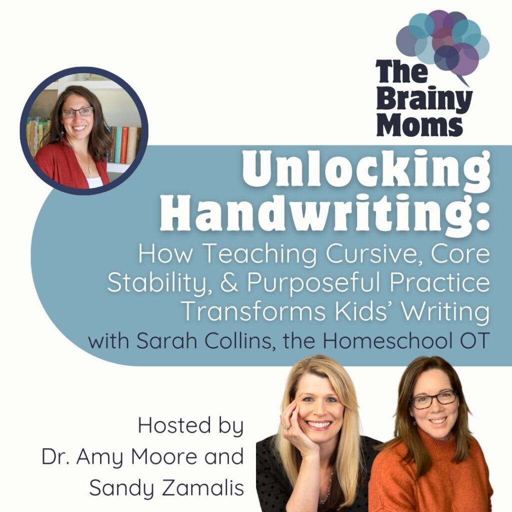 Handwriting isn’t just pencil meets paper; it’s purpose, posture, vision, and motor planning working in sync. On this episode of The Brainy Moms Podcast, Dr. Amy and Sandy sit down with occupational therapist and homeschool consultant Sarah Collins (The Homeschool OT) to explore how kids move from “hot mess” letters to confident, legible writing by addressing the real foundations: core strength, shoulder stability, explicit motor plans, and a clear sense that their ideas matter.