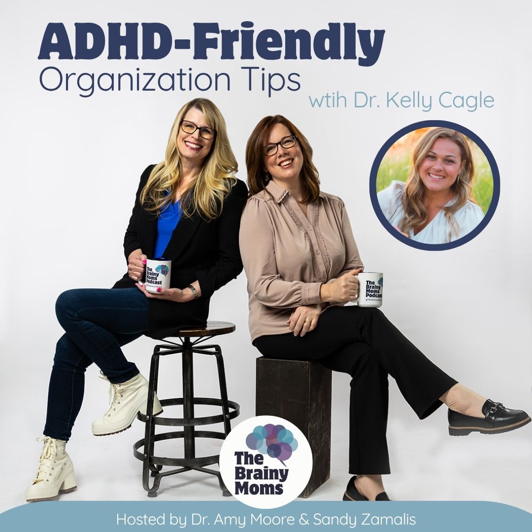 Need some help getting your ADHD child organized? (Or yourself?) Chaos isn’t a character flaw, and “just get organized” isn’t a plan for ADHD kids and adults. On this episode of The Brainy Moms podcast, Dr. Amy and Sandy chat with Dr. Kelly Cagle to talk about what actually makes home life simpler when ADHD and other neurodivergent needs are in the mix. Dr. Kelly is a parenting educator, ADHD researcher, host of the Parenting IQ podcast, and homeschool mom of three so she knows a little about this topic! If you’ve ever stared at a pile of papers, a closet full of clothes you don’t even like, or a kitchen missing every spoon, you’ll hear yourself in this conversation.